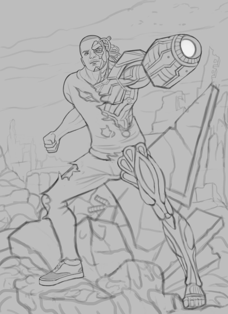 Decided to take a short break from the image to begin on a new one, this time depicting a friend and fellow artist 'Steve Cas' as a cyborg. Very excited for this image and just finished up a sketch, please let me know any input as I'd like to get as much right as possible before beginning the painting stage, just makes this easier! Any comments are welcome!