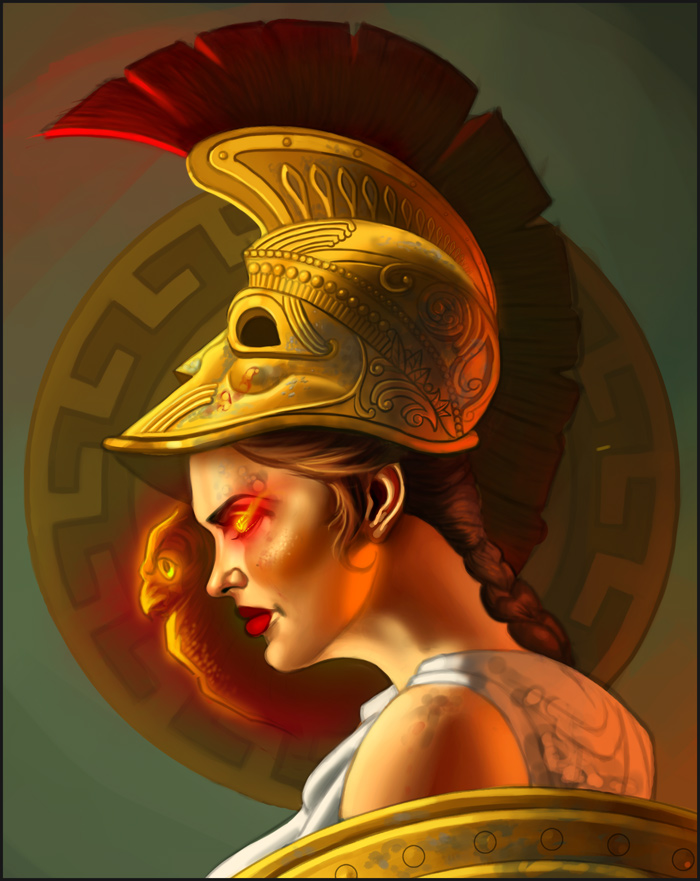 I began the painting process for Athena, focused on establishing the lighting above all. Still fairly early but I think it's looking fairly decent at this stage: