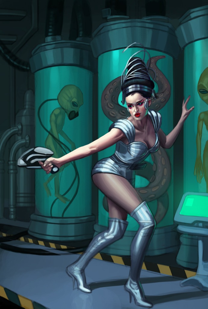 It's just like a cover of a 50's pulp sci-fi novel. And I agree about the skin tones. They really pull the woman forward into the light to create an impressive depth behind.