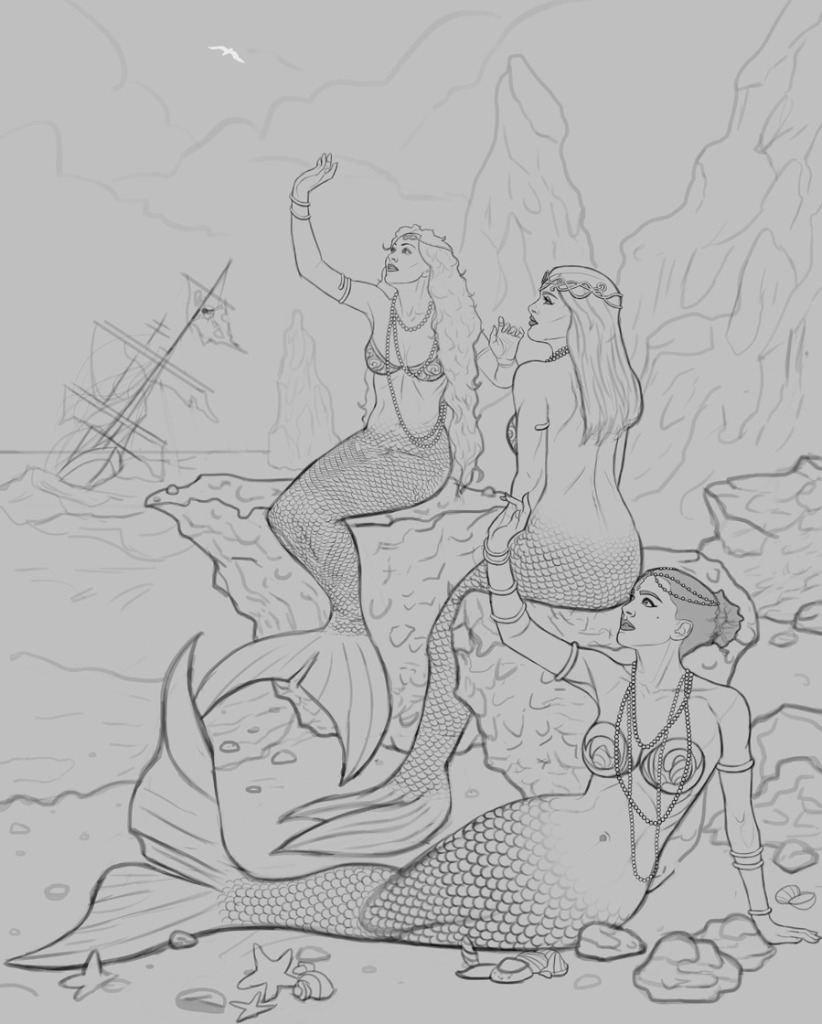 Charlotte wrote: 2) There's a tangent (or very close to a tangent) between the lowermost mermaid's face and the next mermaid's bum. If possible, I think a greater overlap would look better.