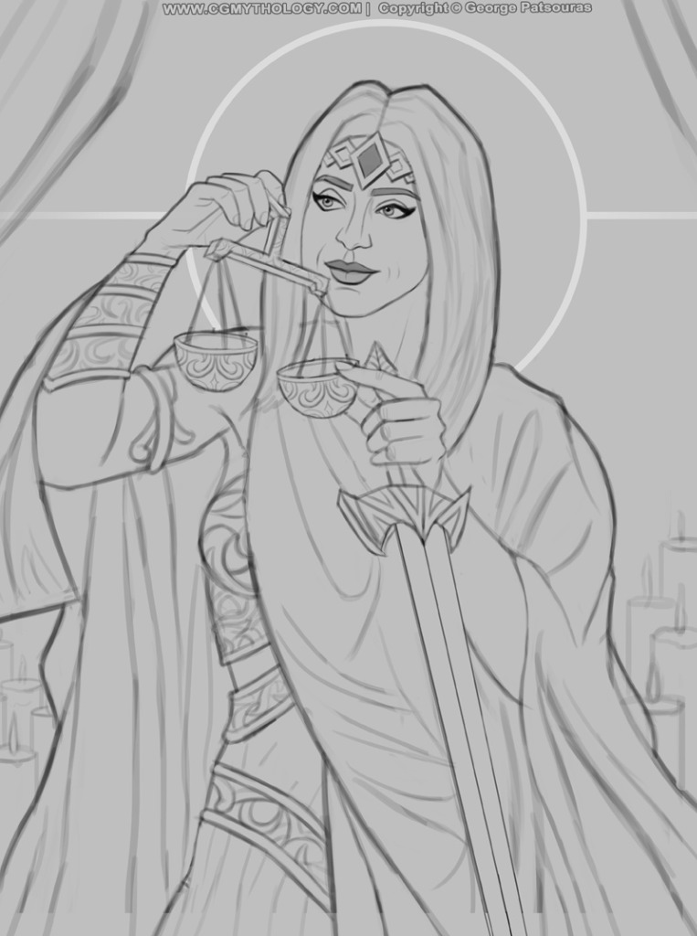 ............And time for another illustration! This is for a friend, I previously illustrated her as 'Lady Justice' and will keep the same concept, but a totally different execution. Going for a classical feel with this one, really excited to begin painting it in soon. Please feel free to let me know any feedback on the linework, however! Here's the current sketch: