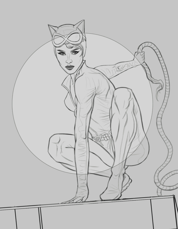 I finished up the Catwoman image, very pleased with how it turned out. Of course there's still time for tweaks and minor changes if necessary, so any final feedback would be more than welcome. Below is the illustration followed by some steps for those interested!