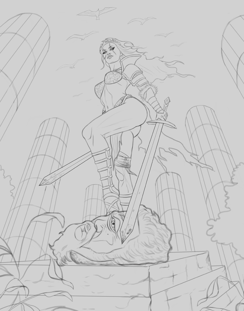 Time for a new illustration! I wanted to draw something a bit more dynamic in terms of perspective while maintaining an iconic look to the image, and this is the result. The 'Gladiator' theme was something I wanted to do for a while as well, and I feel it works quite well here. The figure was referenced from 'Grafit' with some artistic liberty taken in terms of character design. Any input before I begin the painting process would be greatly appreciated! Below is the sketch: