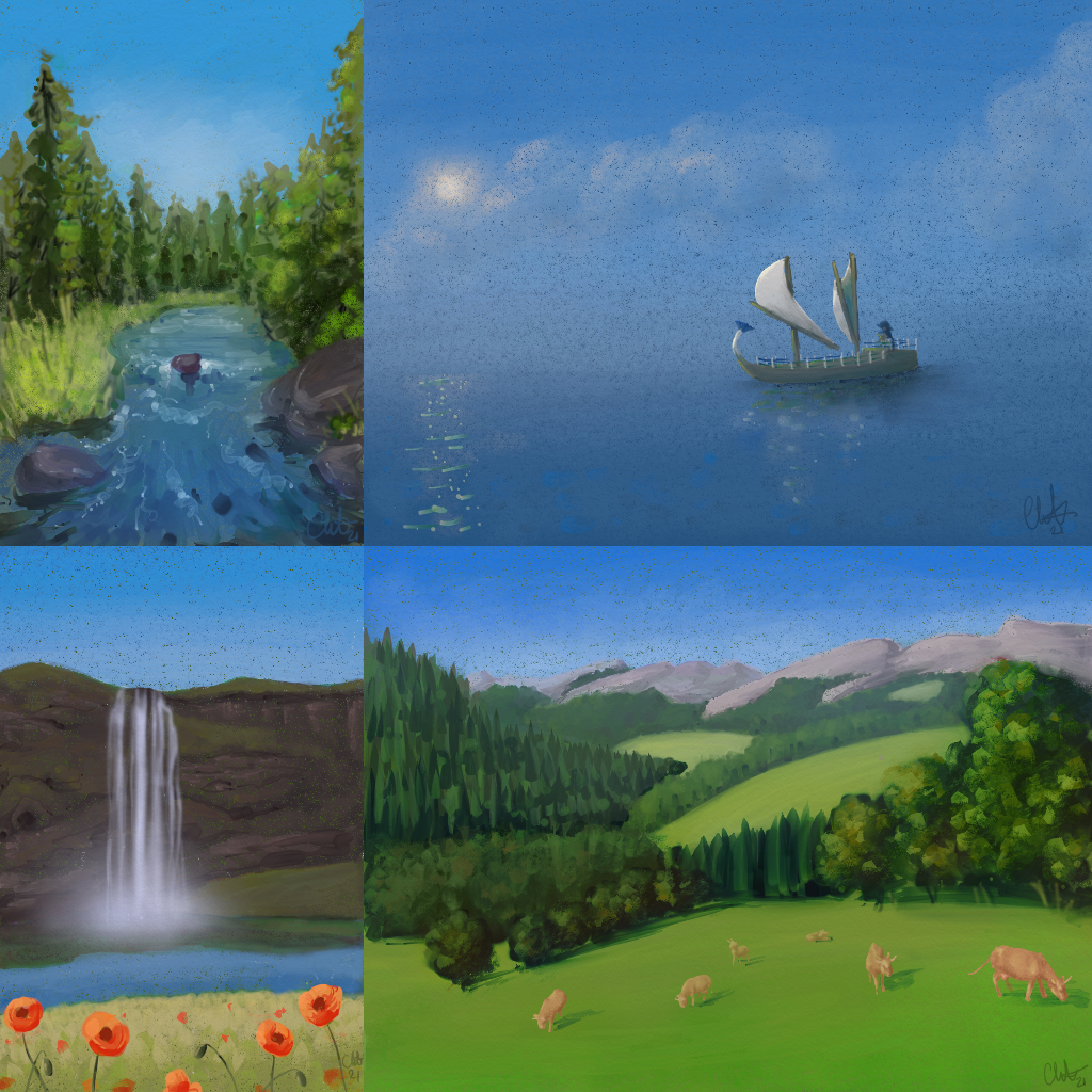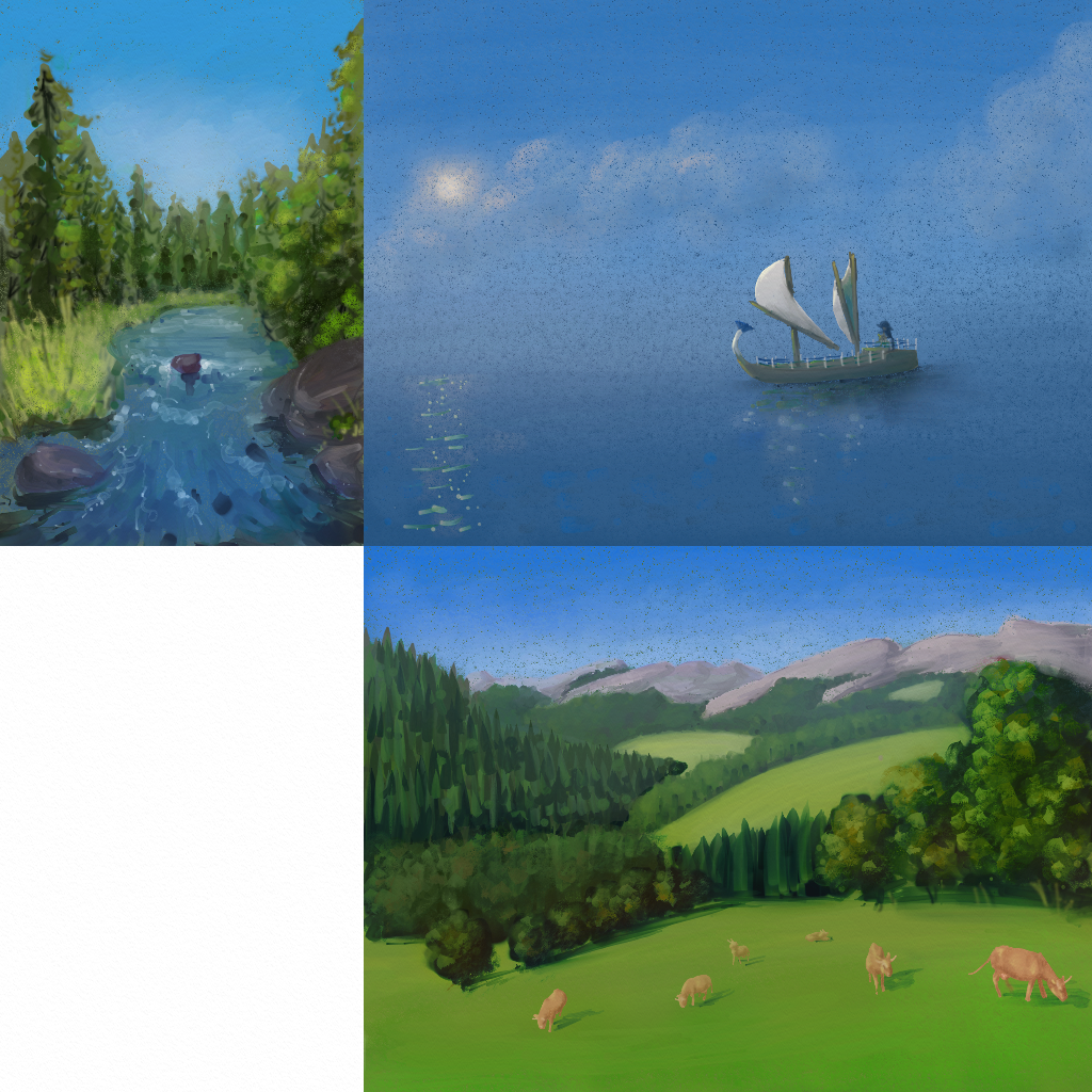 (Since images should preferably be square, I make them like this, getting two big landscape oriented ones and two smaller portrait oriented ones. And I'd hate to leave part of the texture blank