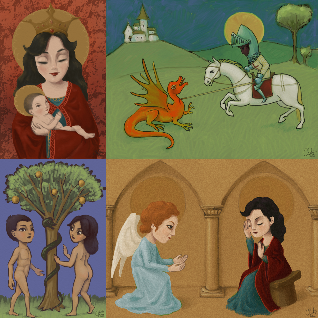 The religious ideas were kind of easier since medieval times didn't have much art that wasn't religious.... I don't think they usually had landscape paintings at all. But it's a game and I don't have to be historically accurate. So there.