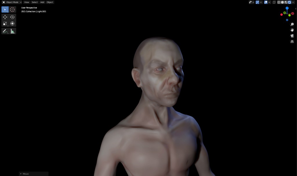 I didn't do a proper texture paint either, I just slapped on a few vertex colours which was easier than doing that fiddly UV unwrap. Also in order to do this I had to decimate the model to a fraction of the polygons to stop Blender freezing/lagging while "painting" so none of this has been saved into my scultpy file that still needs yet more sculpting.