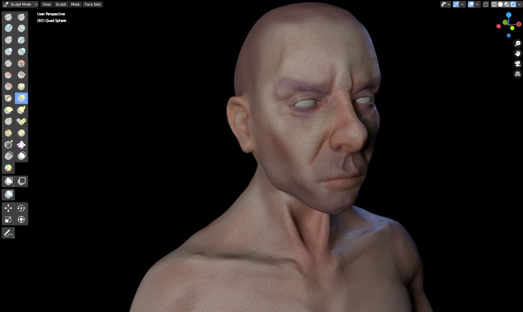 Also the topology of the model is appalling now so I even though I did save it this time I saved it as a separate file so that I still have the untextured one with over a million polygons if I want to do more sculpting.