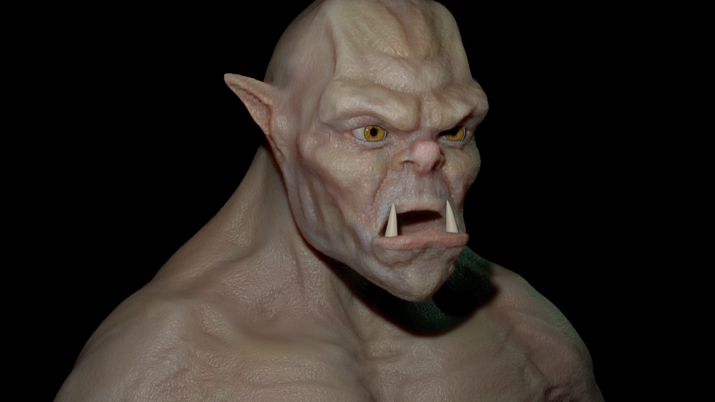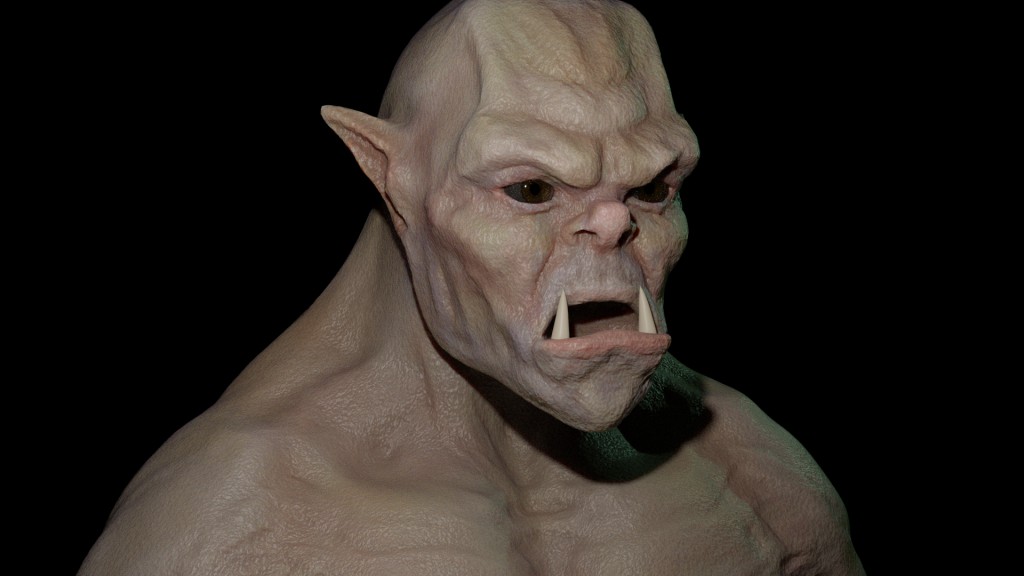 I've also started thinking about doing the lower half of his body and giving him some kind of clothing but despite seeing lots of Orcs in Lord Of The Rings, Skyrim and many other fantasy things, when I stop to visualise them I have absolutely no idea what kind of thing an Orc would wear!