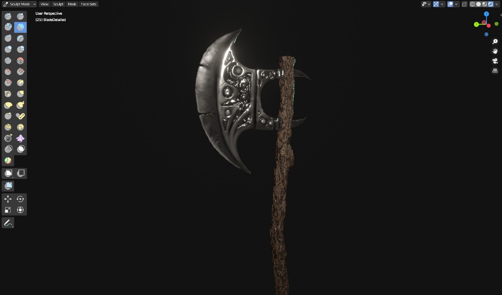 The idea is that you create the high poly sculpted version with all the detail and bake that down to the low poly version to create textures that replicate the high poly detail you sculpted(I tried a bit of "sculpting", too, but... eh...