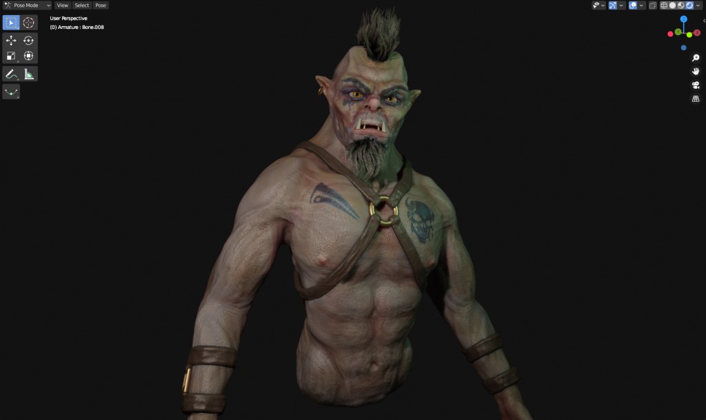 And I think I'm mostly done with modelling/texturing now (even though he still has no legs.) I think it's now time to merge things and work on the weight painting so that I don't have any last minute surprises when it goes wrong.