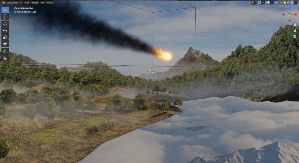 Unfortunately at the moment I've got the back four landscape meshes in one file which I render out and then use that pic as a background plate for the grassy foreground/dinos in another file so the mist pass doesn't transition between them.