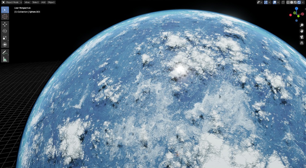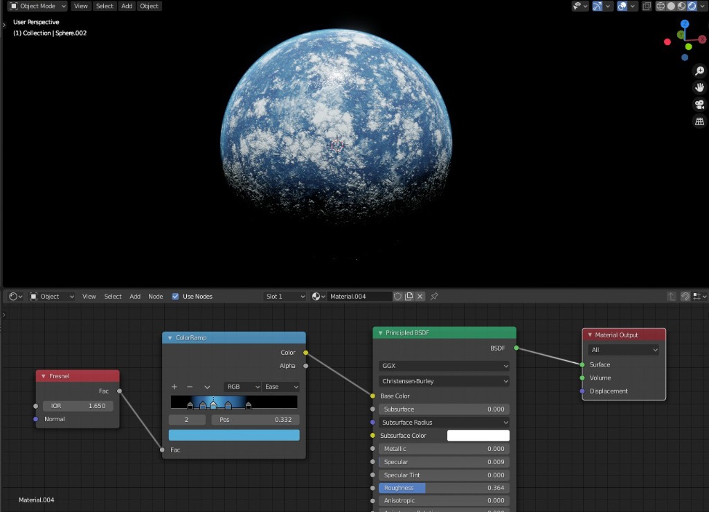 But today I was fiddling with the Fresnel node and a gradient colour ramp on another outer sphere and this one doesn't seem quite as bad as previous efforts.