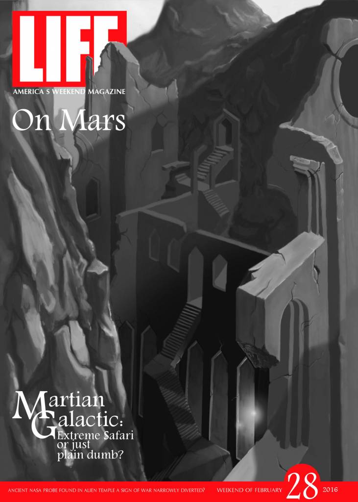 I was going to do something similar with mine, a cover of Life magazine, as in LIFE: On Mars. We'll see if I still get time to do it.