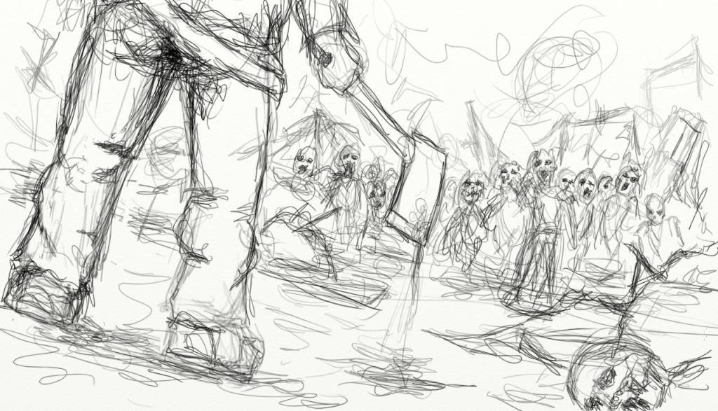 Atto, i'm loving the action poses you have going on so far, especially the guy clutching the wall. So much drama you definitely picked a unique idea, and also you forced me to do research so I can enjoy it more.