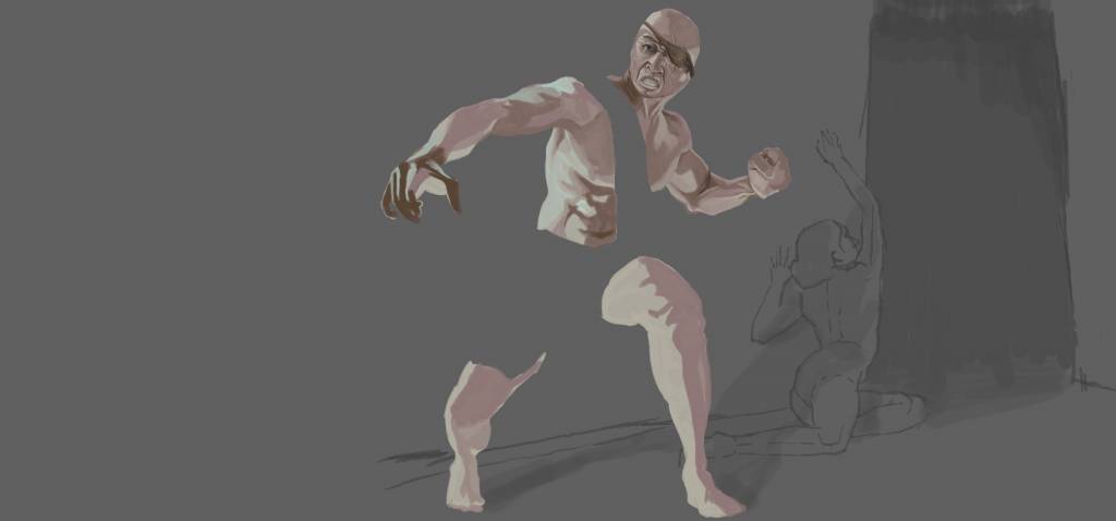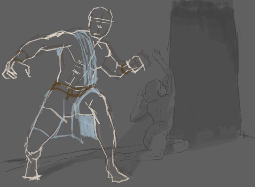 Another great pose in your pic, by the way. You sketch them out in a very convincing way. And that shadow cast over the other figure looks very dramatic and symbolic.