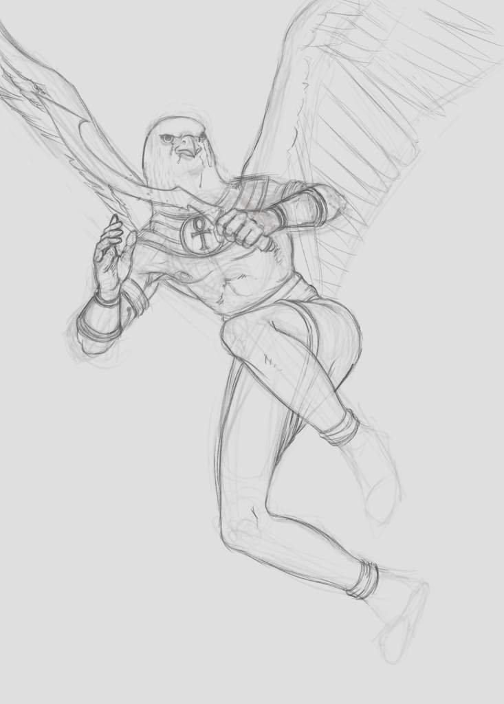 Re hands. First take photo of hand, use photo of hand as reference for drawing said hand in particular pose (at least that's what I did for this and the hand holding the khopesh took a while).