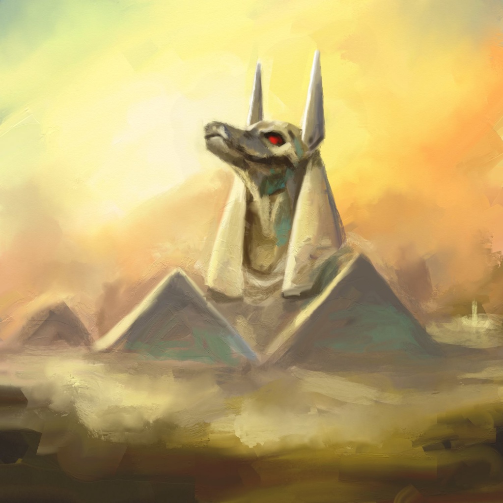 Brief: Slightly later than intended... Create an illustration suitable for a card from a table top card game (think Magic the Gathering like) featuring an Egyptian God (you don't need to depict any card like icons etc, just the pic). Charlotte can come in and edit this if it wasn't what she meant