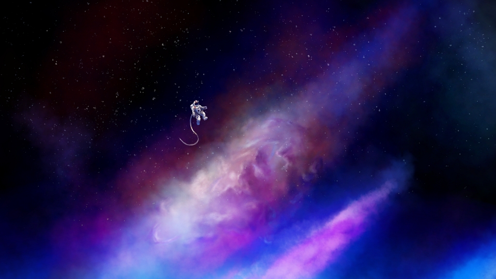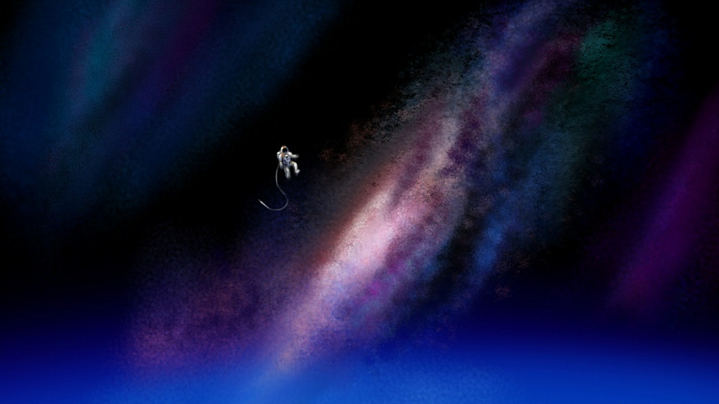 I like some of the shapes and colours in this but I'm not sure if it all detracts from the spaceman being alone.
