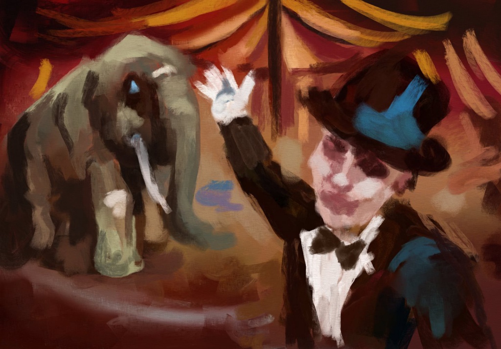 And why must creepy, big-headed ringmasters strike such hard to draw poses?