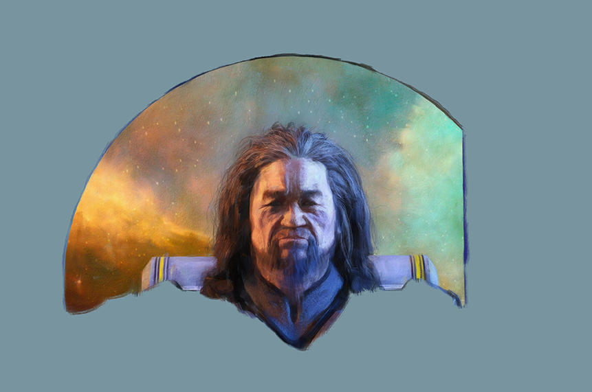 I stopped working on the character and tried different approaches with the background. After several failed attempts, I think I got a space nebula with colors that I think will work behind his head (a spaceship window will eventually be behind him). Just posting a detail of the process, because that's all I've got.