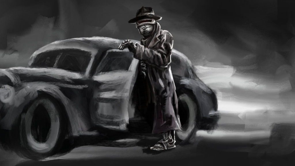 Brief: Design a poster for a fiction Film Noir movie with a fantasy or Science fiction theme.