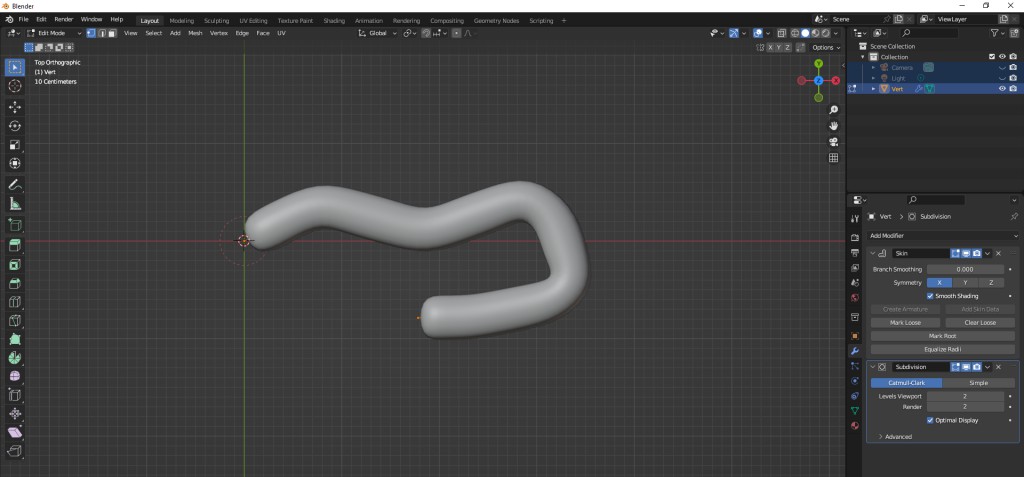 You start with a single vertex and extrude it to make the edge. You then keep on extruding to draw a wiggly line. The skin modifier takes that edge and expands it into a mesh.