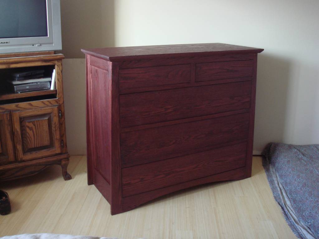 Our dresser pre handles installed (went with oiled copper). Red Oak stained cherry.