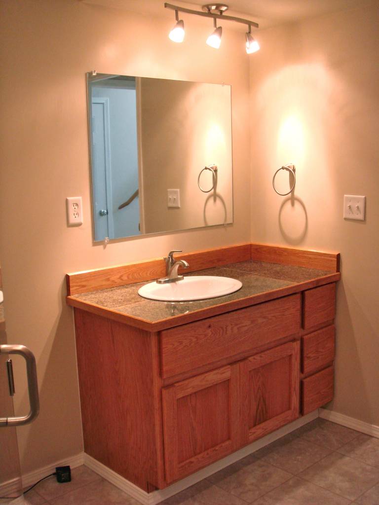 Vanity I built for the last remodel I did. Oak, golden pine stain, with granite tile top.