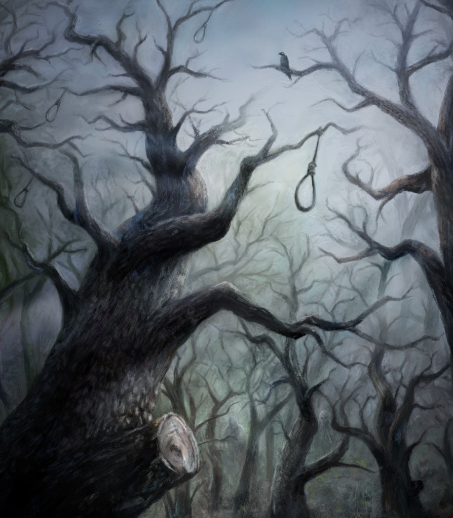 There's just so much in the image that I wish I'd put in mine. The clearer storytelling, fantastic composition with the tree reaching in from one side, that figure with the slight lean to the body that suggests approaching movement and the amazing dramatic sky. And the final thing that really impressed me and adds even more power to the image is the length of the noose. I don't know why but it just makes it seem much more ominous to have it dangling so far down like a long pendulum. Great work!
