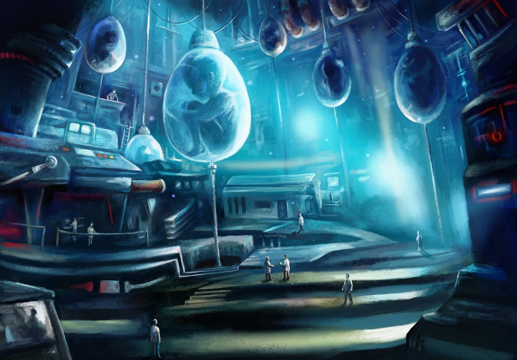 Val, your entry has the kind of 'wholeness' that I wanted to capture in mine but failed to do. It's a completed concept with great details and the sense of light is wonderful. I really like the way all the machinery is oversized compared to the figures, echoing the scale of those foetus' (foeti?). The simple colour palette is very effective though I do think you could have pushed the centres of those red lights further toward white to make them pop a little more. That main foetus (singular this time thank god) also reminds me of the final part of 2001, it's strangely alien yet recognisable at the same time.