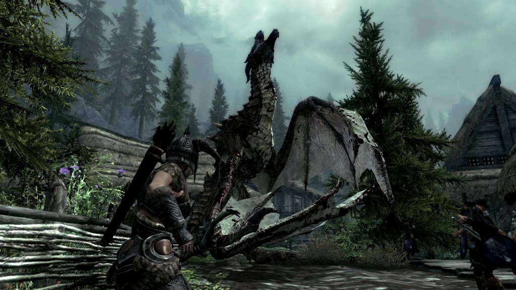 Just a random one (I'd better get used to them now) but it landed in Falkreath! It's one thing battling them in the open plains by a watchtower but fighting it through the closed-in spaces of a town is a different experience entirely.