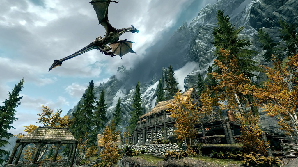 I gulped a couple of potions and legged it towards Riverwood. Thankfully the landscape opens out a bit more there to allow the dragon to land and allow me to give it some much needed sword to the face!