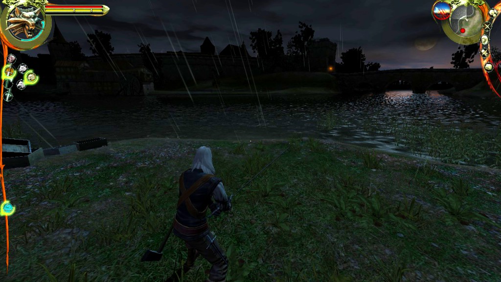 So after a reload I thought I'd approach the bridge with my sword ready.... but Geralt will only let you draw your sword (slowly!) when a fight has started.