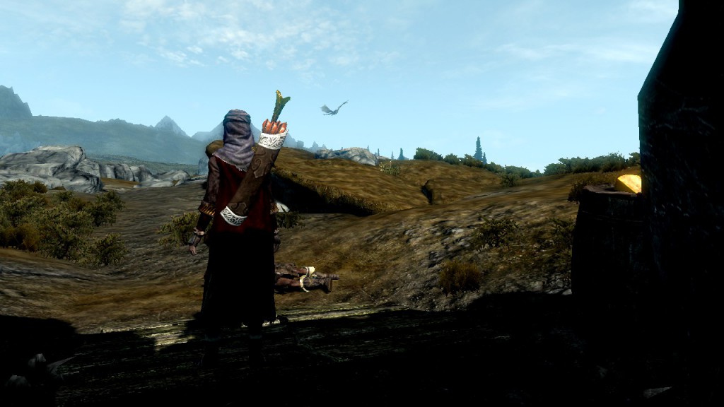 Anyway, with all of them eventually dead I looted the place and got myself some nice weapons (lots of scimitars) and a traditional Hammerfell outfit and then slowly limped my way out of the cavern to find...