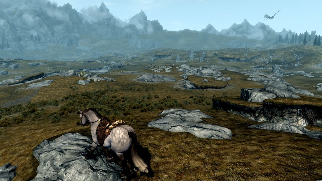 Well, I can't fight it at walking speed so I'd better call my horse and get it to carry some of those weapons. I whistle and it comes trotting towards me as if to say, "Yes?"