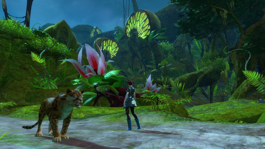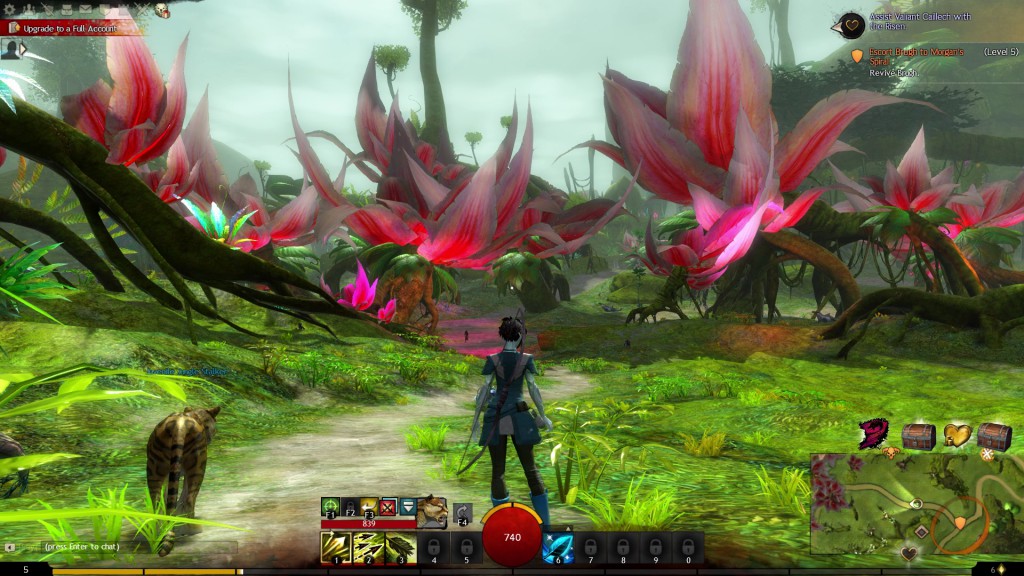 So I went back to my Ranger character in GW2. The forest area is much nicer than the place where my Nord clone was stabbing/bashing. It really does have that kind of Morrowind feel with all those big flowers...