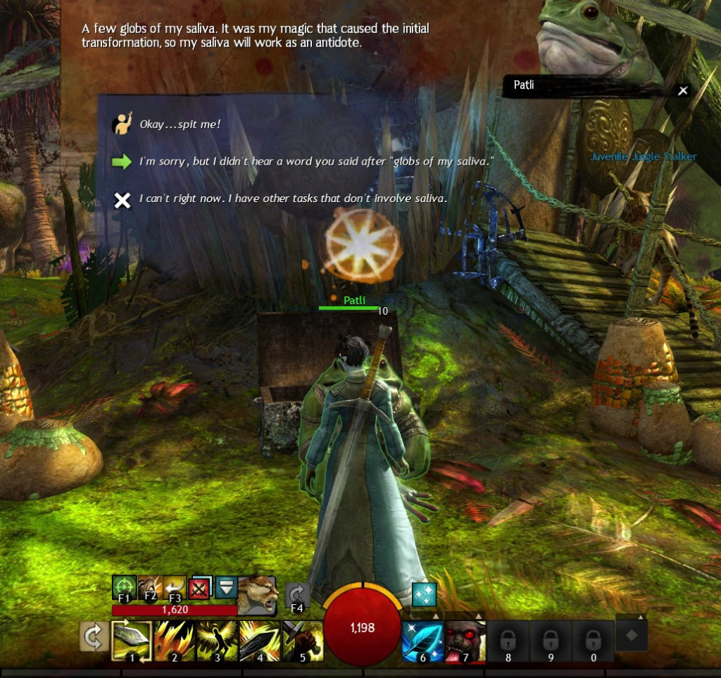 ...and it's a good thing that I was wearing that mask as the next quest had me asking a strange frog-like creature to spit in my face!