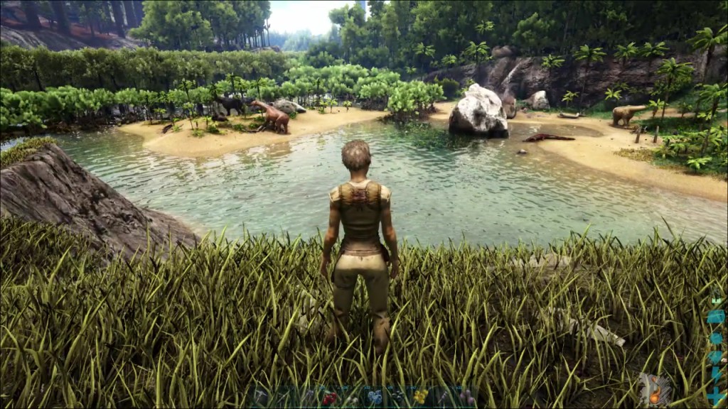 So I sneaked around the opposite side of that beach this time, crept past the Spinosaur and climbed up a series of rocks to see these long necked fellows far below...