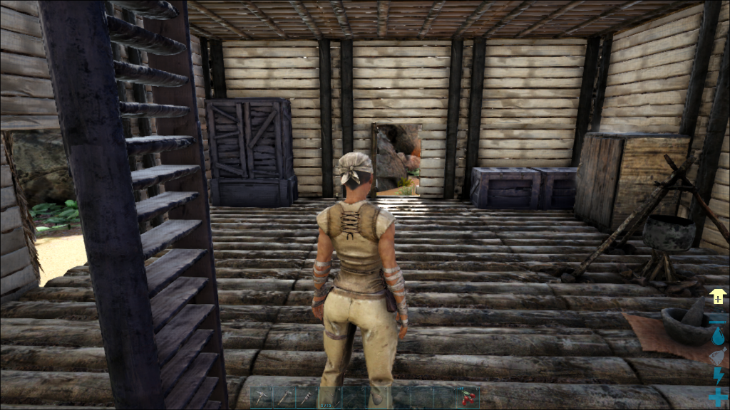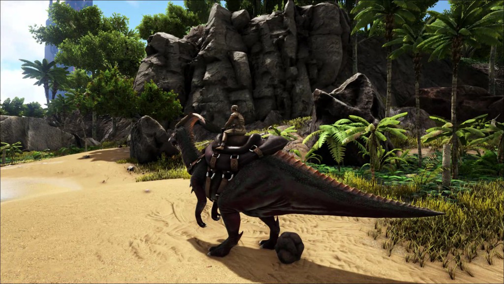 Spent most of my time getting to grips with the riding and behaviour controls. The radar ping is really useful, spotted a few hidey predators in that way which allowed me to walk a different route or prepare for attack. (Die Level 19 Troodons!) I also dispatched some Moschops to get my hide stocks back up and then made a couple of beds and sleeping bags to drop off when I start exploring further. Getting my Parasaur to do the attacking is good fun but I am scared it's gonna die. I REALLY don't want to lose all the stuff it's carrying for me!
