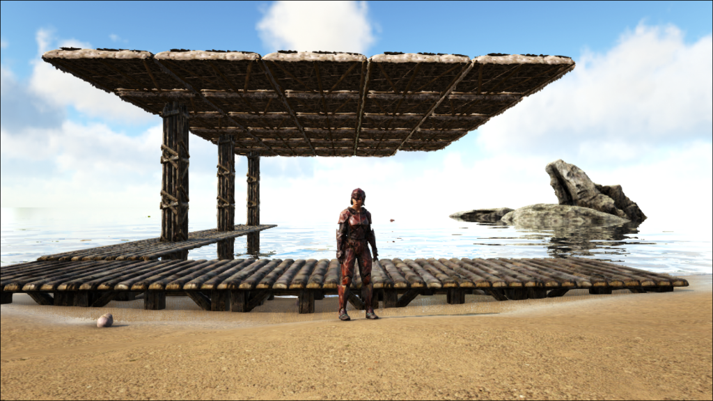 I almost finished my little boathouse/pier thingy. Looks dreadful and I can't reach the last/furthest corner of the roof... but whatever. The raft is still on the other side anyway...