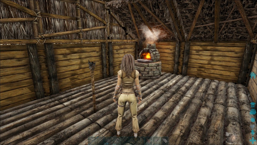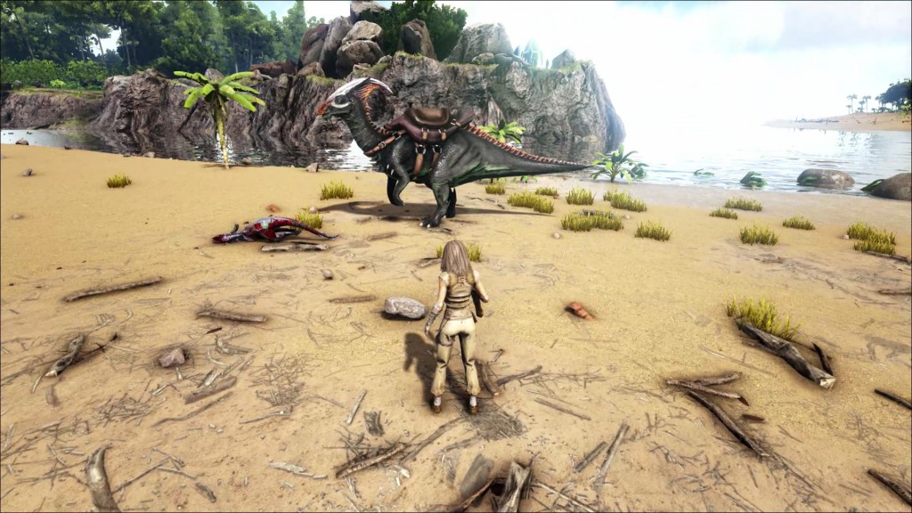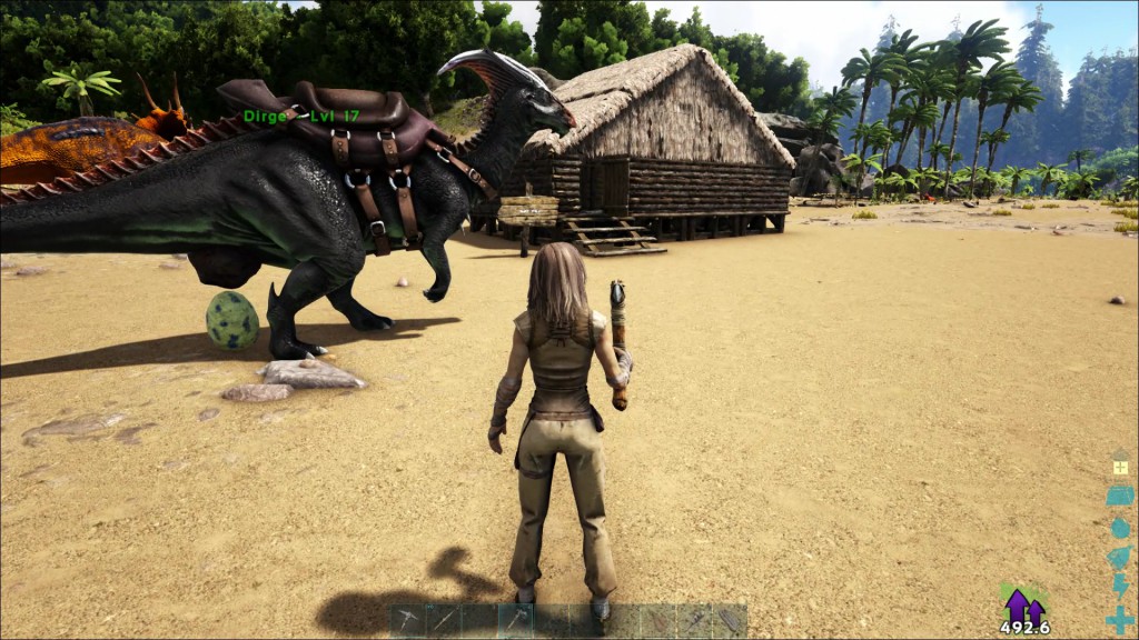 And I seem to have completely cleared out the beach area around my shack to fuel all this crafting. When I arrived it was full of plants and life but now it's looking a little sad and desolate. All the trees have been cut down, rocks gone, Dodos dead, had to hack at the last Moschops for yet more hide (and it was a colourful one!