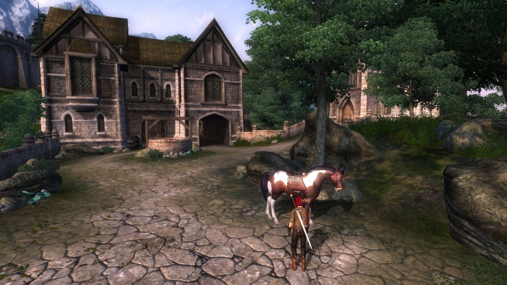 So I walked up the path to the stables and saw two horses there. Now which is the one I can borrow?