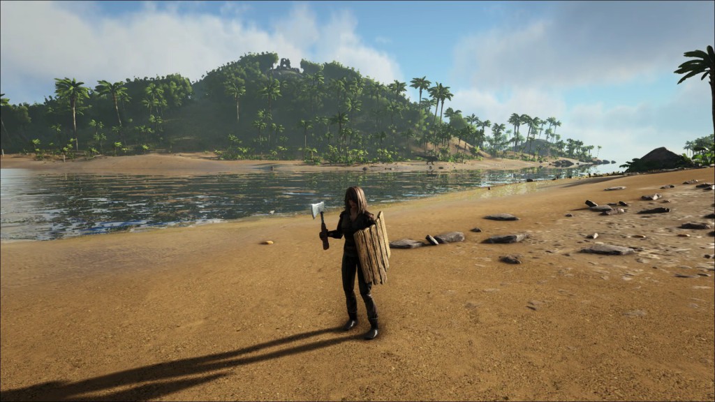 Hmm, that looks like a biggish thing across the water at the back. Carno? Whatever you are, you just stay over there out of the way. (Spoiler: It was attacking everything on that island later but thankfully didn't want to swim over to me. Phew.