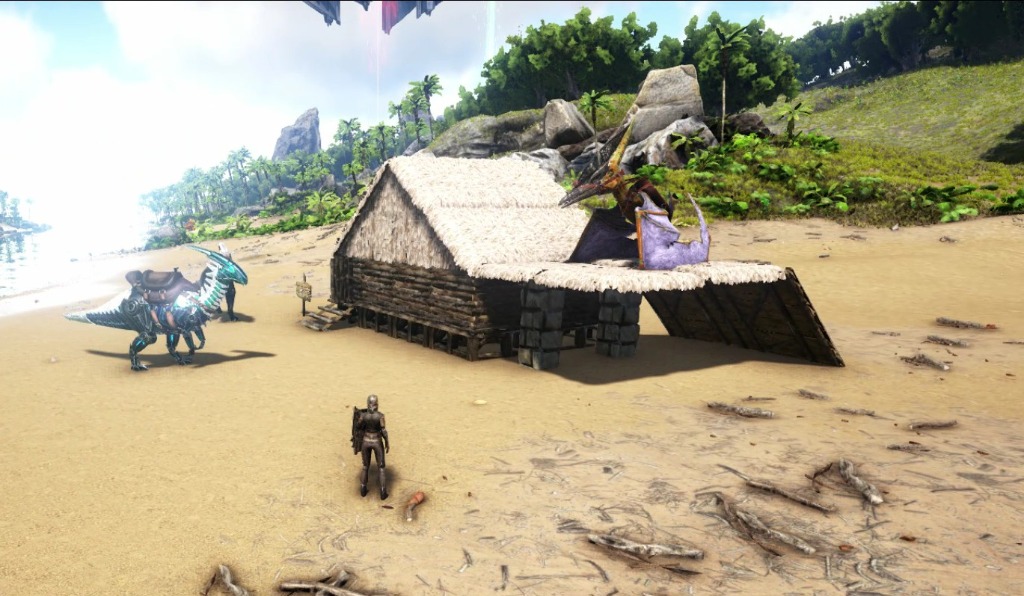 So I ended up having a little battle right there on my raft and as I swung my axe around in a panicky fashion I may have accidently attacked that stylish thatch square in the floor.