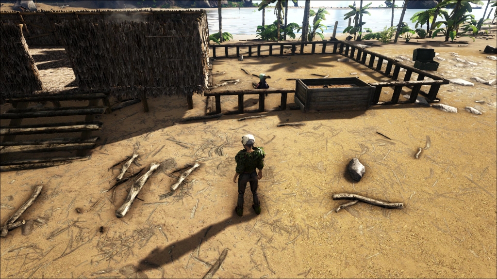My bit of sailing came after all of that building/feeding and I flew across the water and nailed the landing on the raft. I dismounted and walked back to the rudder, I turned round to see where I was going and... the Pteranodon had gone wandering off!
