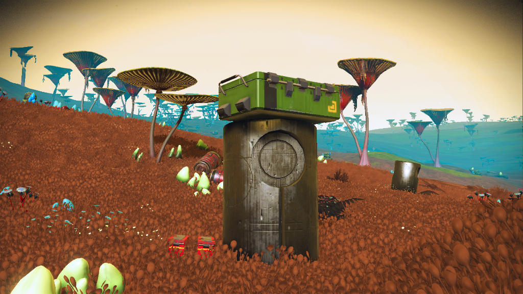 And I'm still not decided whether I should stick with my box or dismantle and rebuild the whole thing. In a way, I don't mind the "brutalism" of the box, but.... maybe in another place. I chose this planet because it was all nice and pretty and colourful - seems a shame not to build something nice and pretty and colourful, too...