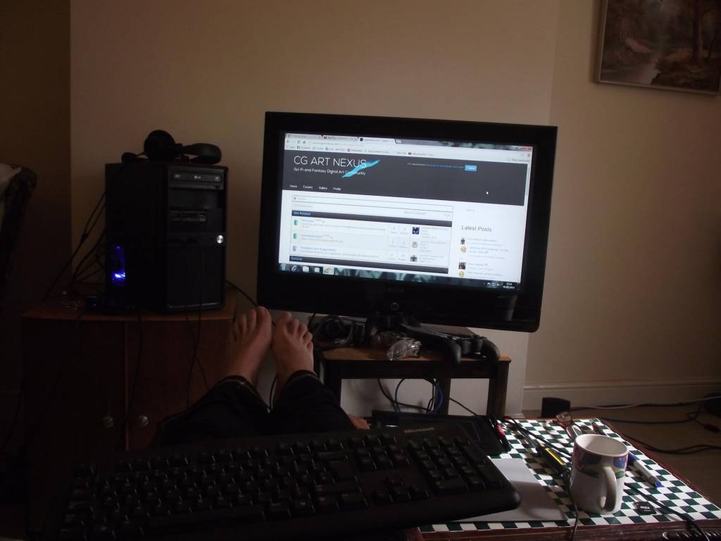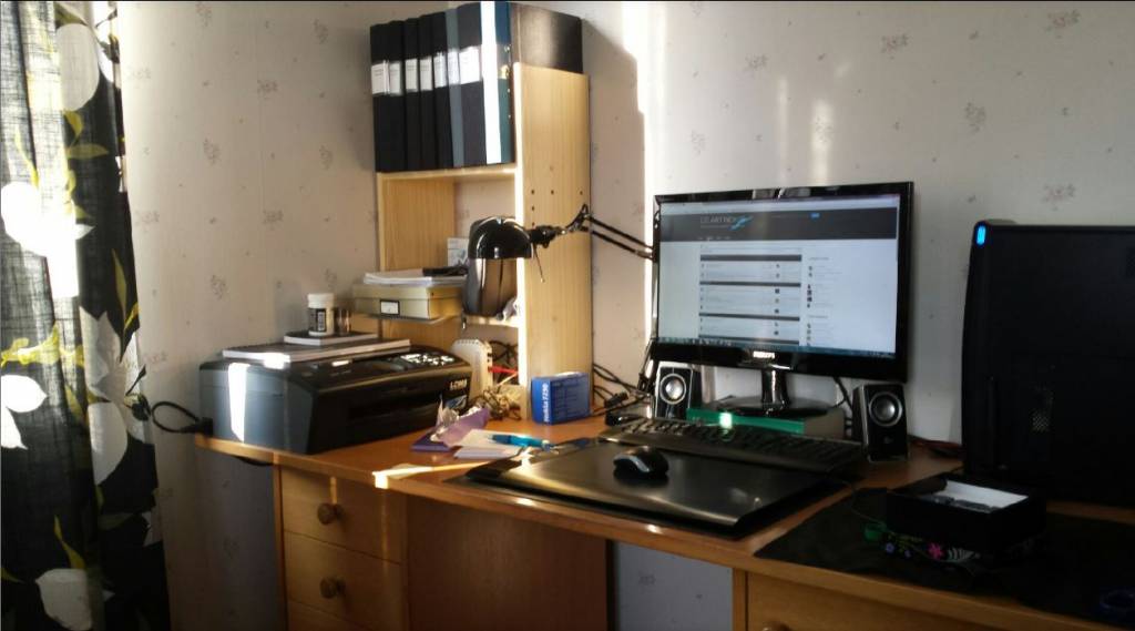 (As you can see I'm too lazy to move aside the tablet when not using it, it doubles as a mouse pad instead... and the dark cloth to the right of it is the cloth that I intended would always protect it when it's not in use. Ha. Me being tidy? Not so...)