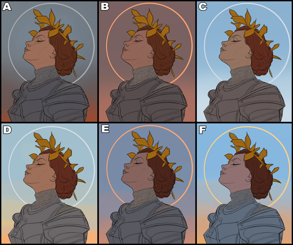 I proceeded with some color tests, I feel A, B, and F work best but it's hard to pick which. I think I'll take a break for a bit so I can take a fresh look later, but any input until then would be greatly appreciated, so please let me know what you feel works best!