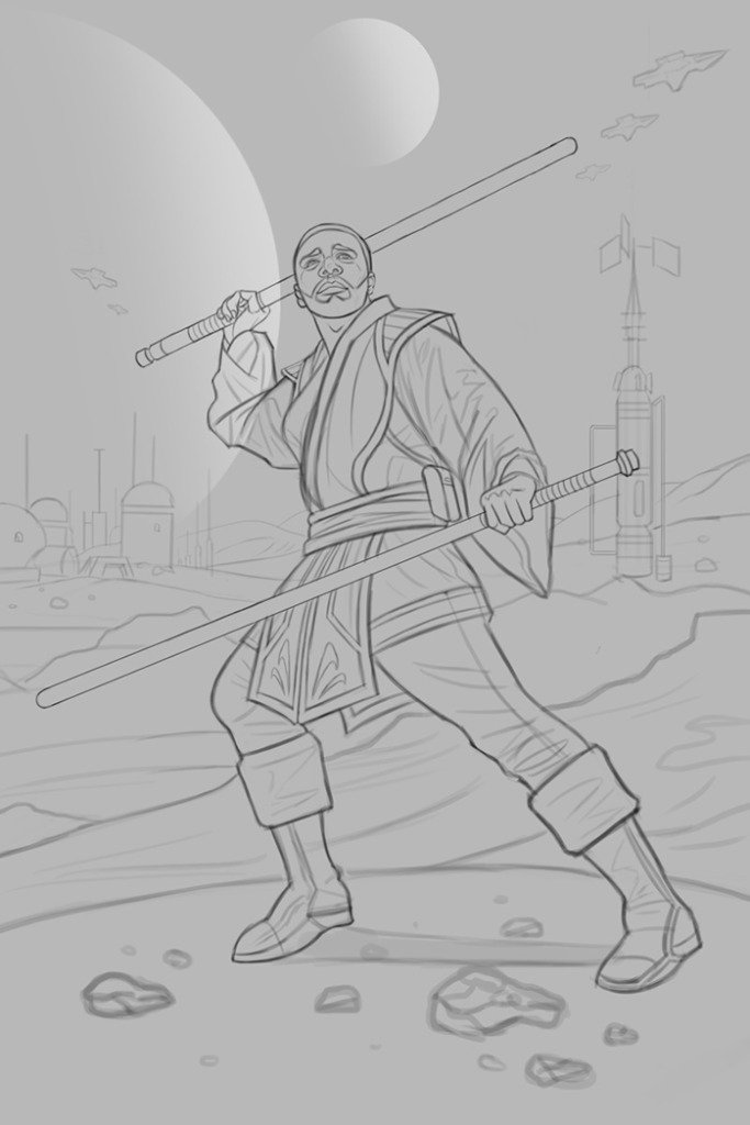 Next I finished up a sketch for a Star Wars-inspired piece, this time featuring a Jedi Knight. Any feedback before I begin painting it in would be most appreciated as always!