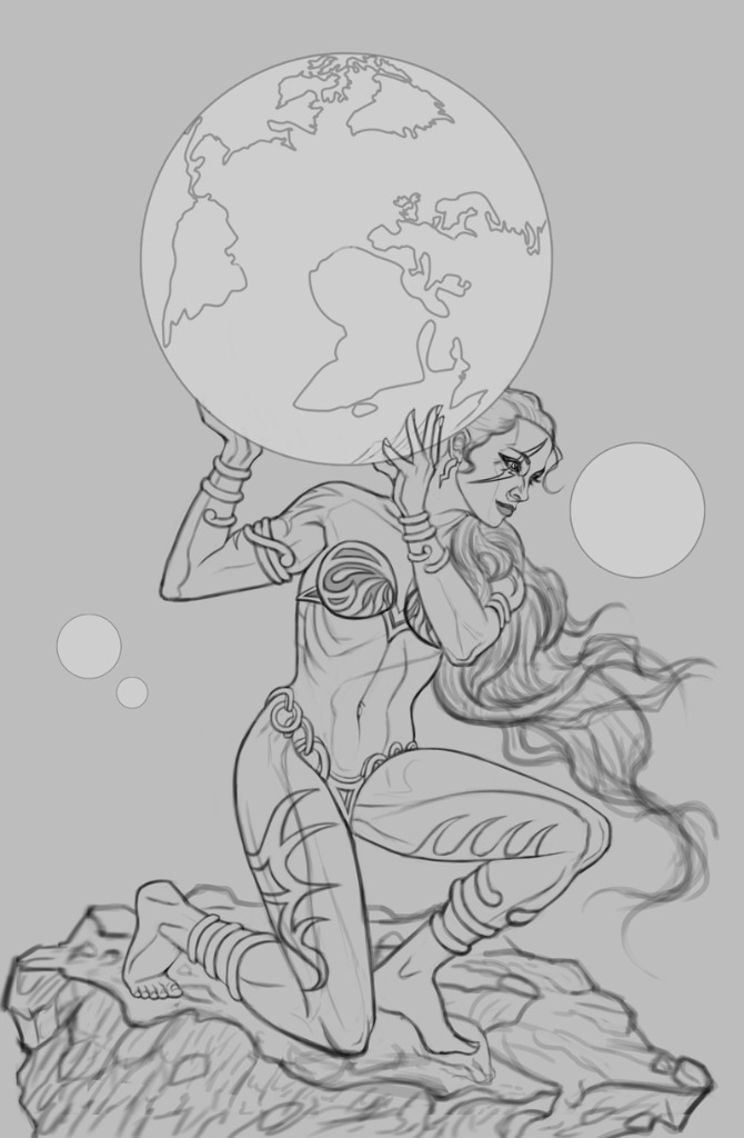 Time for a new illustration! I finished up a sketch for 'Lady Atlas', pretty pleased with how it turned out. Figure was referenced from here . Tried my best to recreate the general pose while coming up with a fairly simple character design, as I want her to appear fairly nude. Any feedback before I begin on some color tests would be highly appreciated! Below is the sketch.